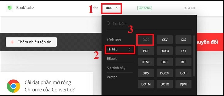 convertio.co để chuyển Excel sang Word