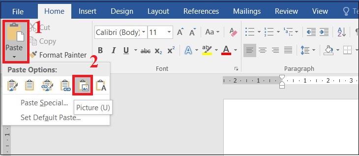 Bước 2: Mở file Word mà bạn muốn dán > Chọn mục Paste > Chọn Picture.
