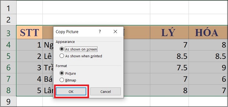 1 Cách copy bảng tính Excel sang Word