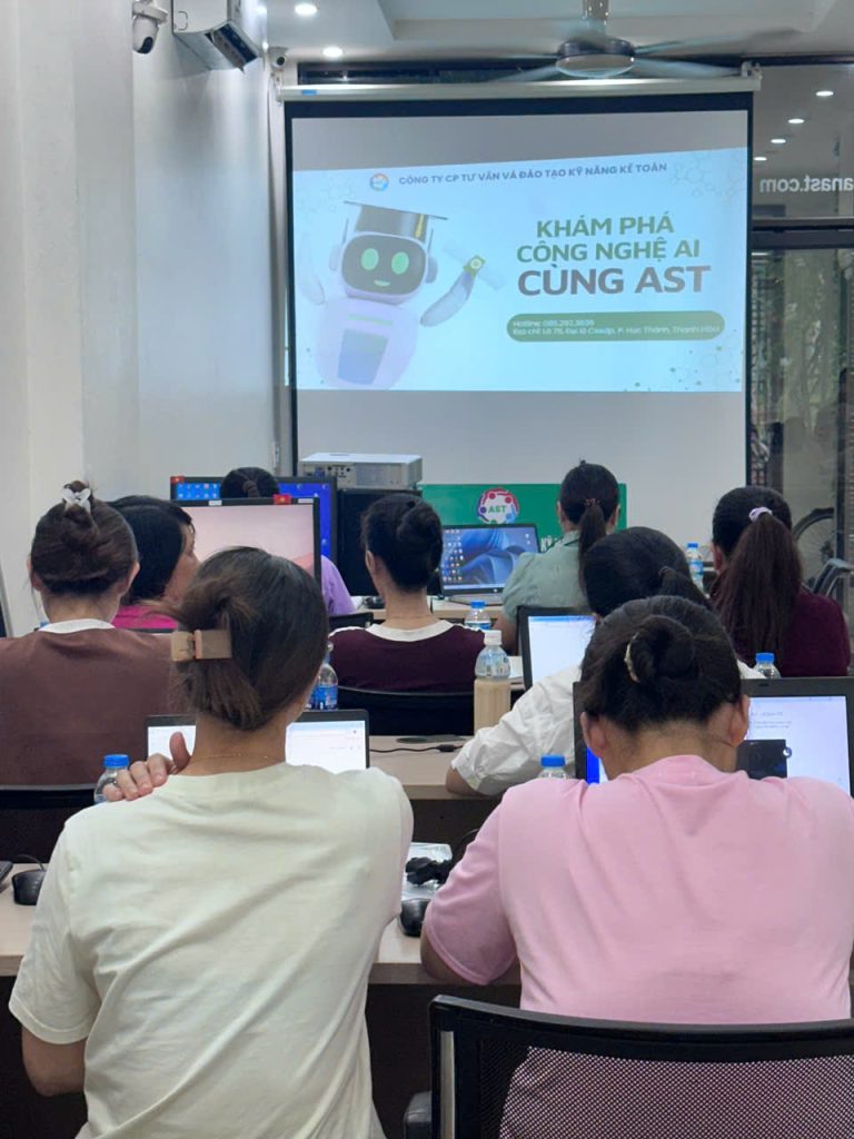 Tại buổi workshop, các học viên không chỉ được giới thiệu tổng quan về xu hướng ứng dụng trí tuệ nhân tạo trong học tập và công việc, mà còn được hướng dẫn chi tiết cách sử dụng các câu lệnh trên chat GPT để khai thác tối đa hiệu quả của AI trong thực tiễn. Với phương pháp giảng dạy sinh động, dễ hiểu, các thầy cô ở Kế toán AST đã giúp học viên tiếp cận công nghệ mới một cách gần gũi và ứng dụng ngay vào công việc hàng ngày.